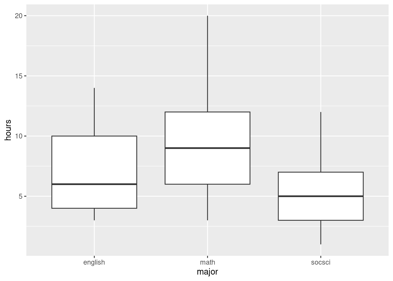 Read in the data and make side-by-side boxplots of study hours by major. What do the boxplots suggest about the comparisons that the researcher wants to make?