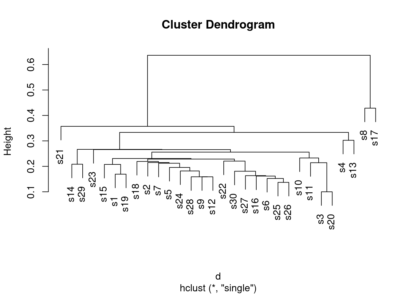 d.1 <- hclust(d, method = "single")