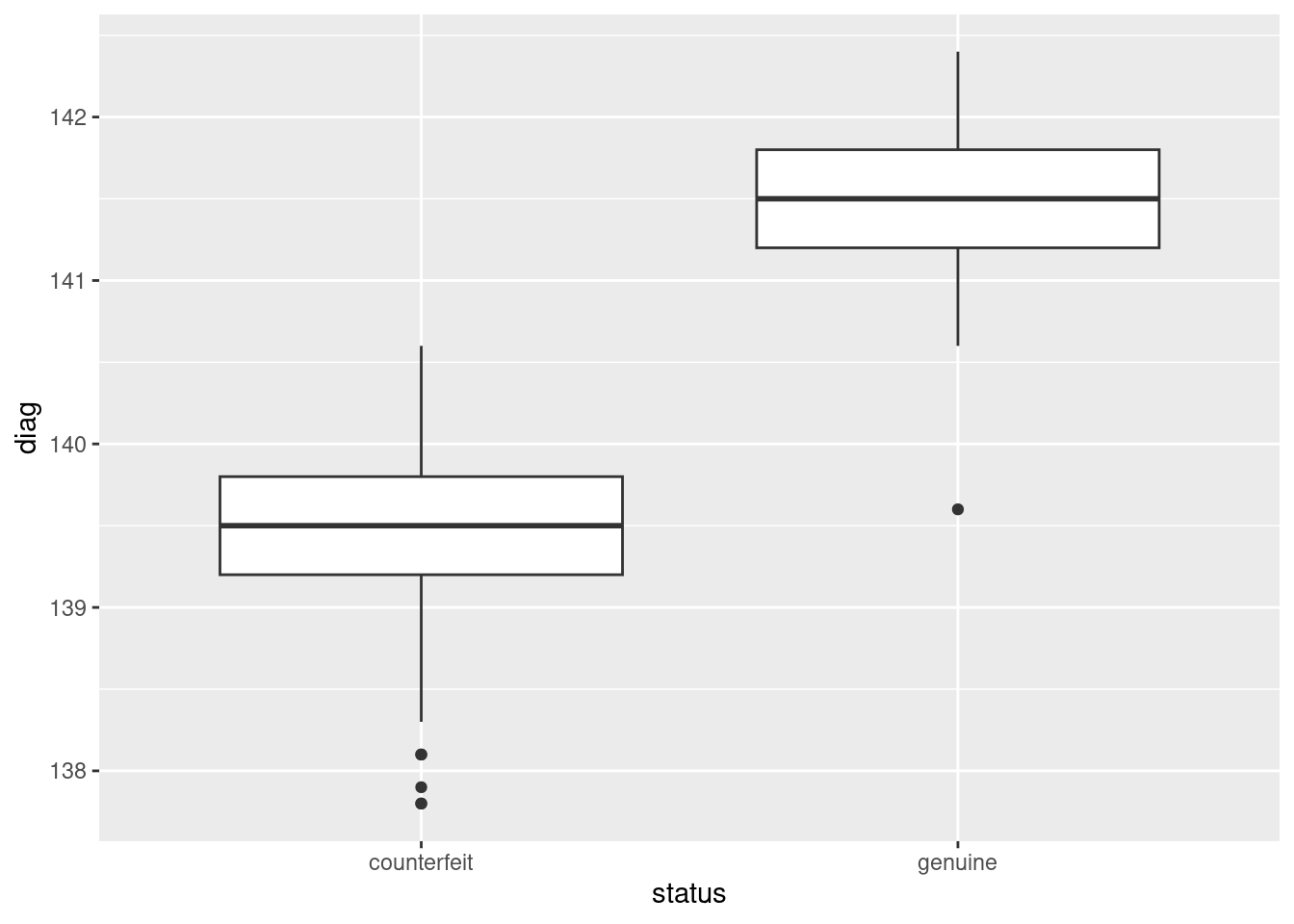 * A Swiss bank collected a number of known counterfeit (fake) bills over time, and sampled a number of known genuine bills of the same denomination. Is it possible to tell, from measurements taken from a bill, whether it is genuine or not? We will explore that issue here. The variables measured were: