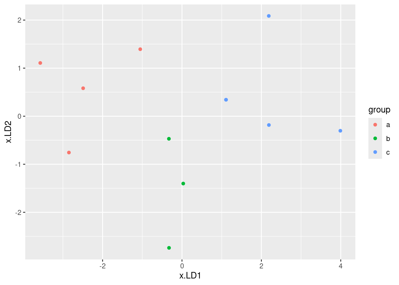 LD1and/orLD2separate the groups. Does your picture confirm the relative importance ofLD1andLD2that you found back in part (here)? Explain briefly.What makes group