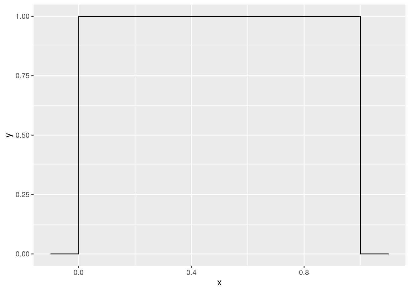 Let’s take a moment to realize what this is saying. If the population looks like the flat-topped uniform distribution, the central limit theorem kicks in for a sample of size three, and thus if your population looks like this, \(t\) procedures will be perfectly good for \(n=3\) or bigger, even though the population isn’t normal.