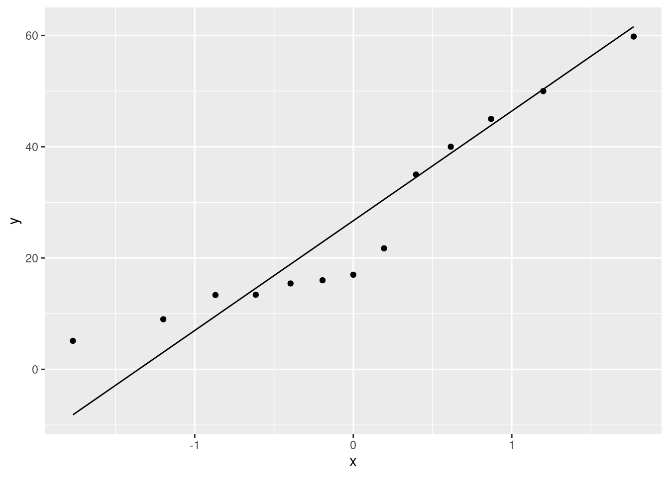 This isn’t the best for assessing normality as such, but it will tell you about lack of symmetry and outliers, which are the most important threats to the \(t\)-test, so it’s fine here. Or, a normal quantile plot: